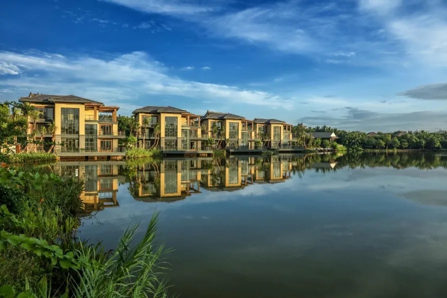在浩瀚的南海之滨,碧绿的琼岛北缘,处于热带滨海地区的省会城市——海口。在海口的城市南端主城区,美丽的南渡江畔,孕育着一片美丽的土地,她就是“鸿洲•江山”。 海口鸿洲•江山项目规划总占地面积约3265亩。项目位于海口市江东新区海榆大道188号,紧邻美兰国际机场,拥有着便利的交通条件和优越的自然环境资源。项目周边交通体系发达,同时具备机场、绕城高速、东线高速、环岛高铁、城市主干道等立体交通网络。 项目首期占地面积1365亩,容积率0.30,拥有超过6万㎡的私家内湖,规划建设包括一座园林中式酒店、别墅社区、时尚商业等。其中,拥有300多间客房的海口鸿洲埃德瑞园林酒店于2010年5月1日开业。项目一期云庭,二期云岸、花悦溪、三期云邸、四期江山·步行街已经交房入住,目前五期别墅正在开发中,五期别墅总用地面积149807.67㎡,将建设196栋花园独栋别墅。目前253-311㎡花园小独栋正在火热销售中。 作为海南的综合性复合型度假旅游地产项目,她承载着海口城市建设和社会发展的光辉梦想,也承载着所有热衷于滨海度假生活人士的理想。