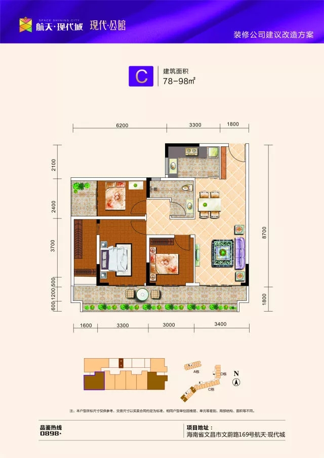 文昌航天现代城壹号领域复式公寓户型建面约47-71㎡