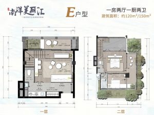 E户型 一房两厅-1室1厅1卫-120.0㎡
